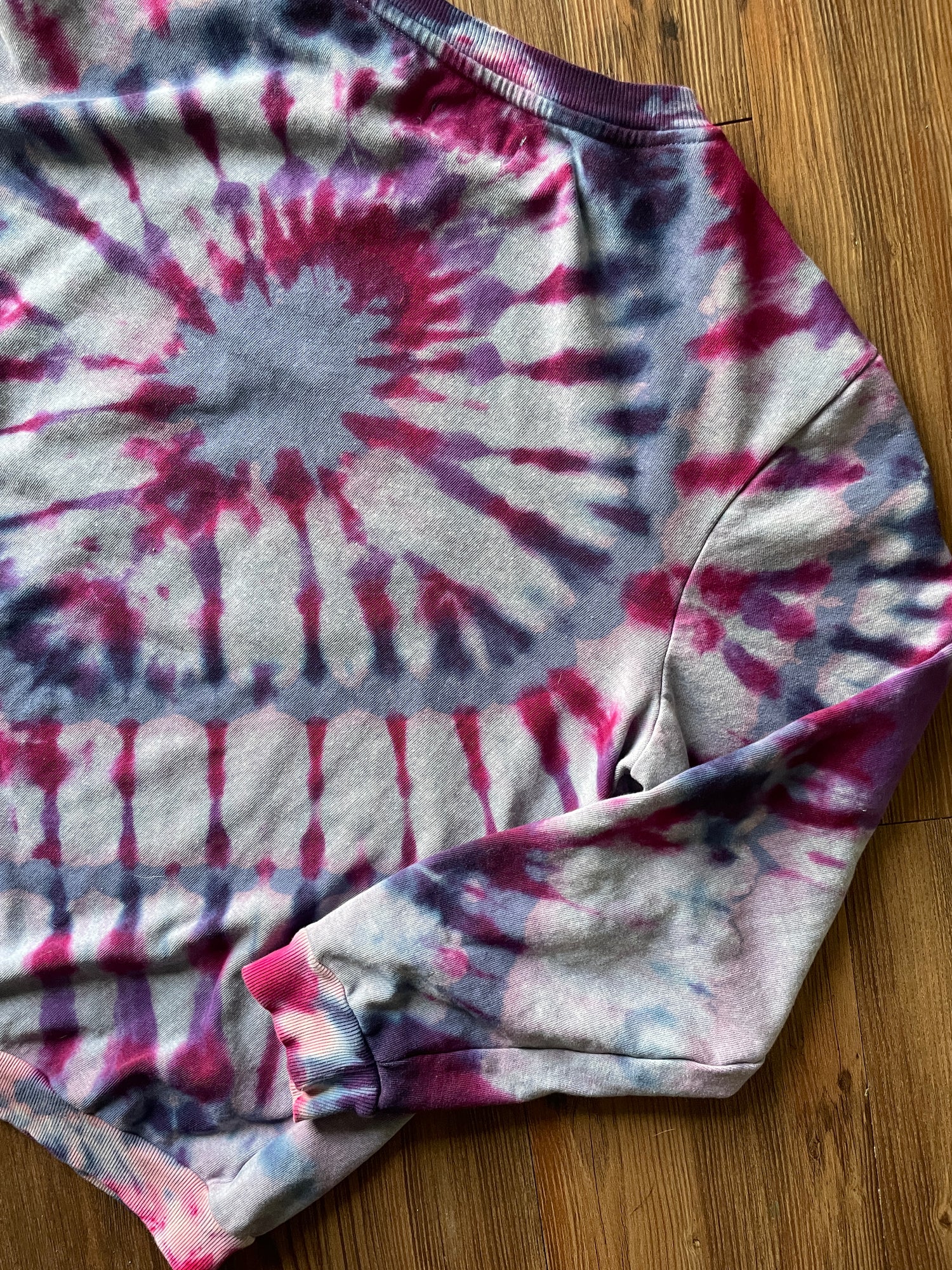 XL Women’s Mountain Palm Tree Tie Dye Lightweight Sweatshirt | Pink, Purple, and Pastel Blue Long Sleeve