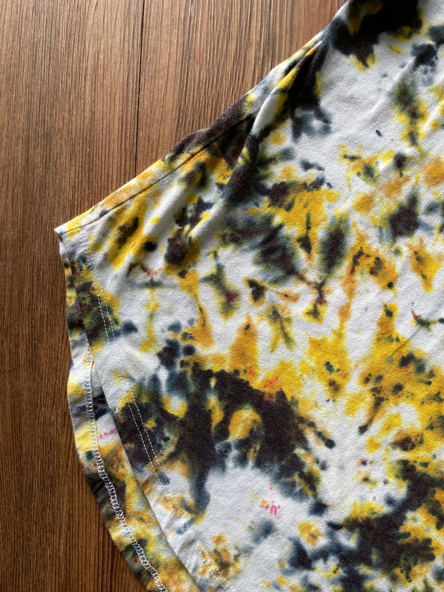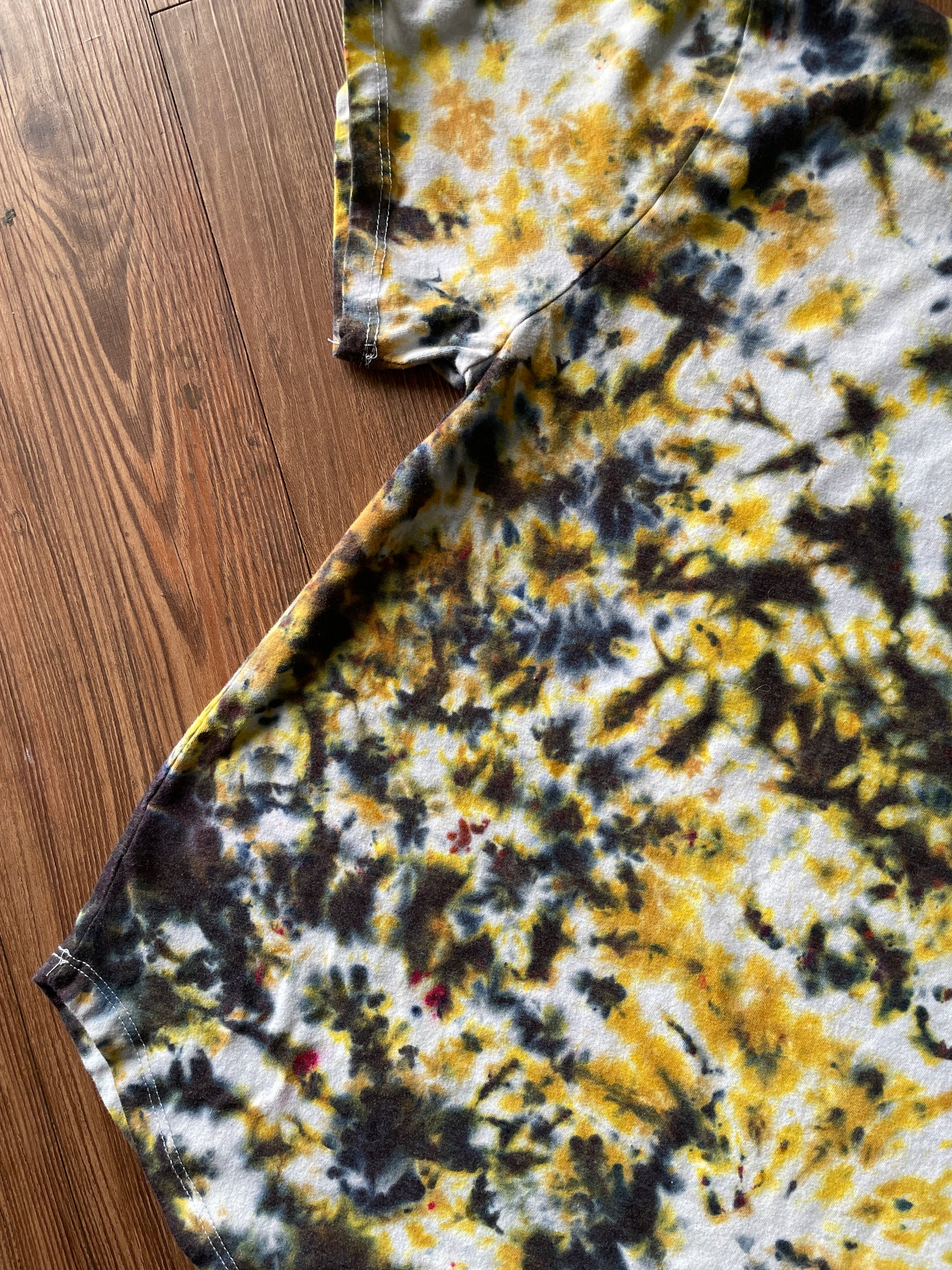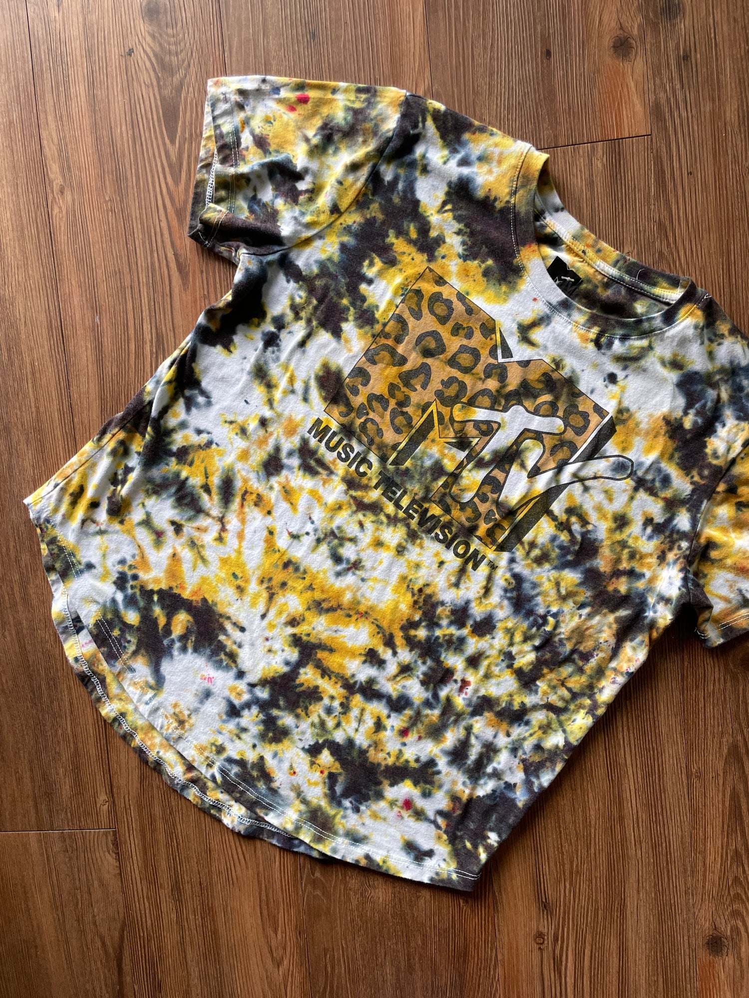XL Women’s MTV Leopard Print Handmade Tie Dye T-Shirt | Music Television Black and Brown Crumpled Tie Dye Short Sleeve