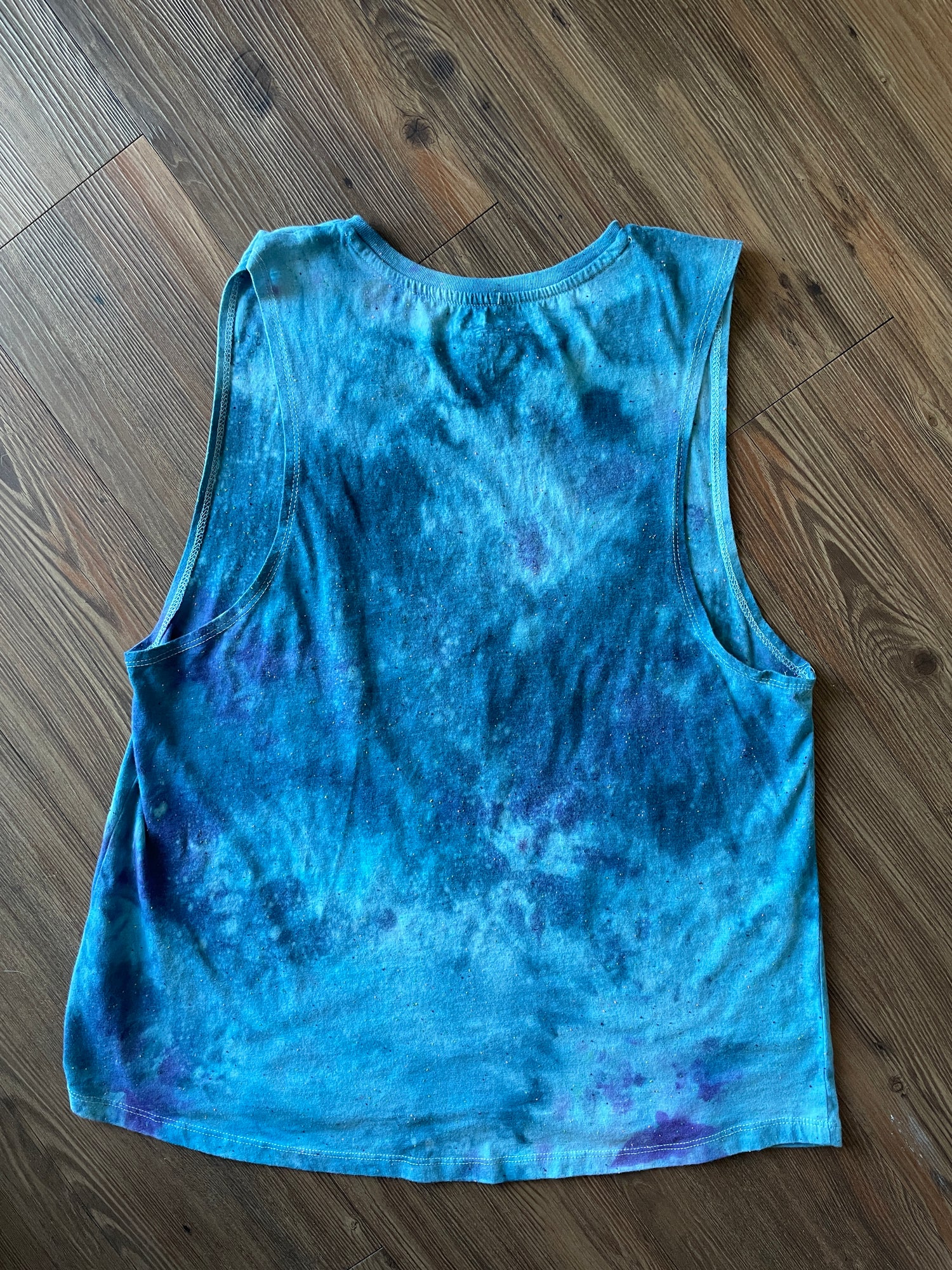 blue tank dyed with shades of blue galaxy tie dye pattern