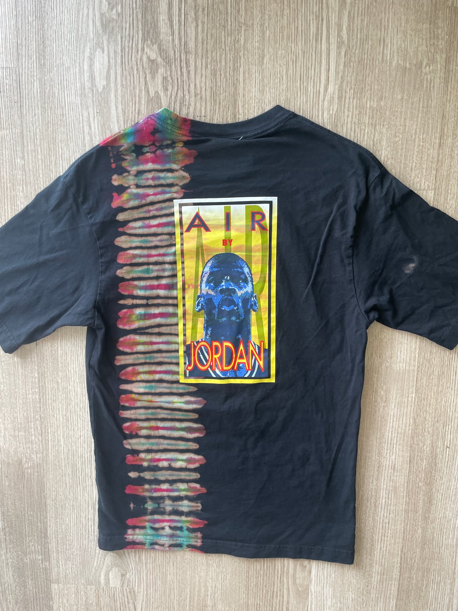 XS/S Men’s Nike Air Jordan Reverse Tie Dye T-Shirt | One-Of-a-Kind Black, Blue, and Red Pleated Short Sleeve