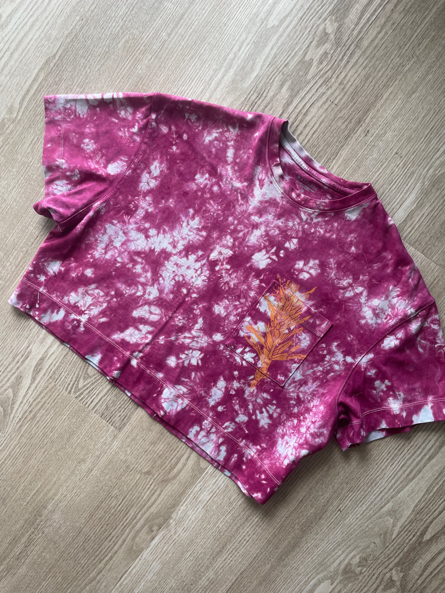 XS/S Women’s Indian Paintbrush Tie Dye Cropped T-Shirt | One-Of-a-Kind Athleta Pink and Plum Crumpled Long Sleeve