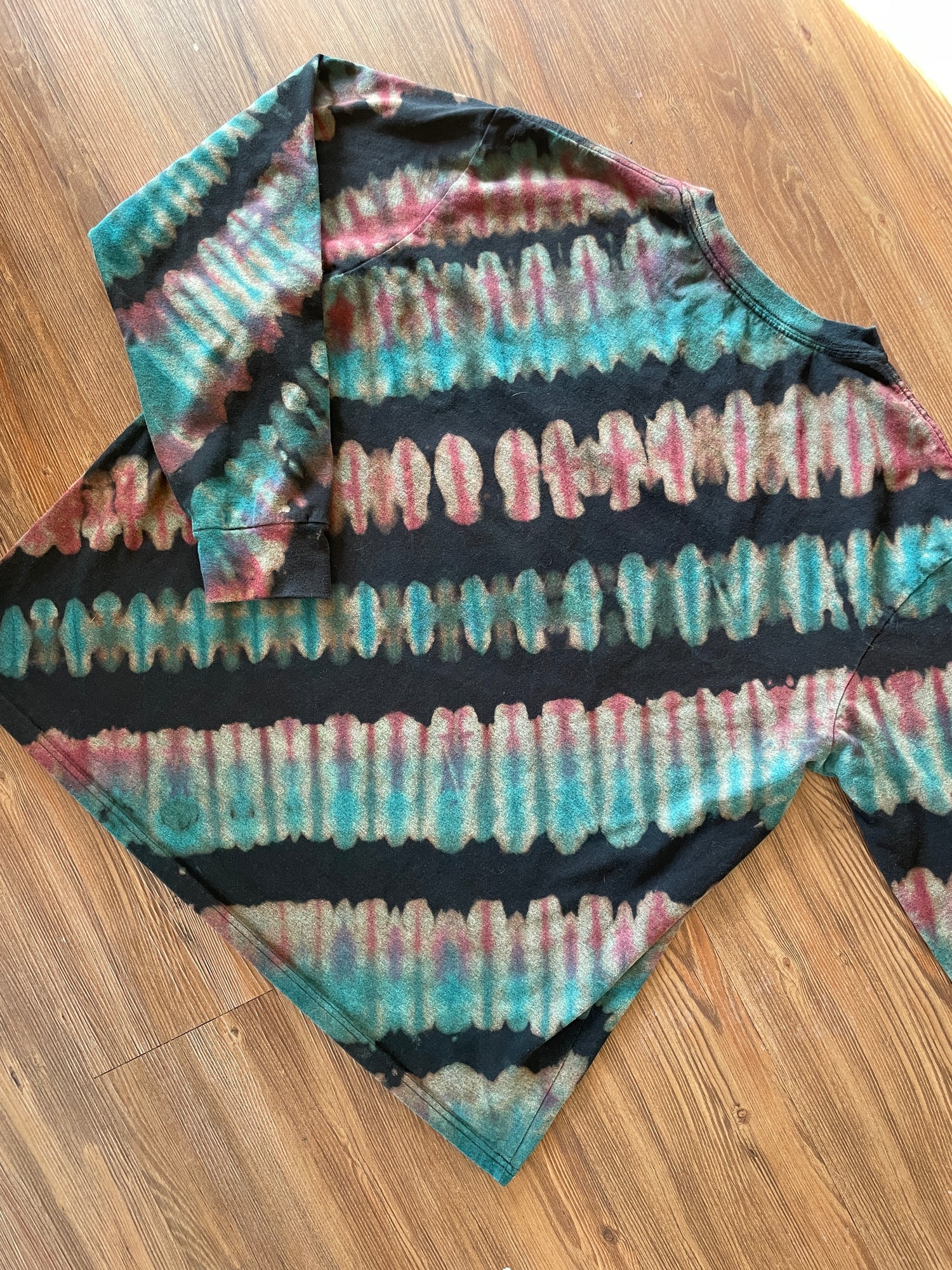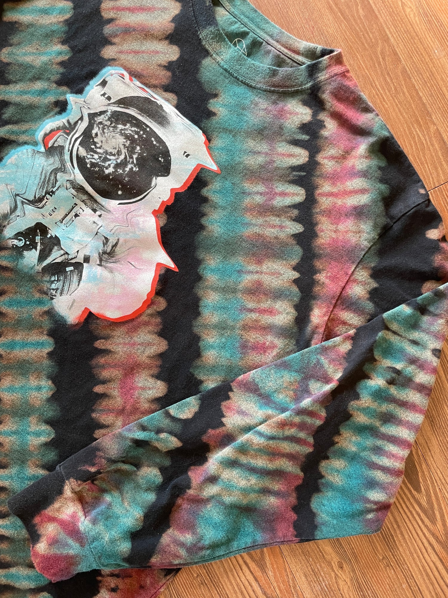 XXL Men’s Original Use Astronaut Handmade Tie Dye T-Shirt | Black, Red, and Blue Pleated Tie Dye Long Sleeve