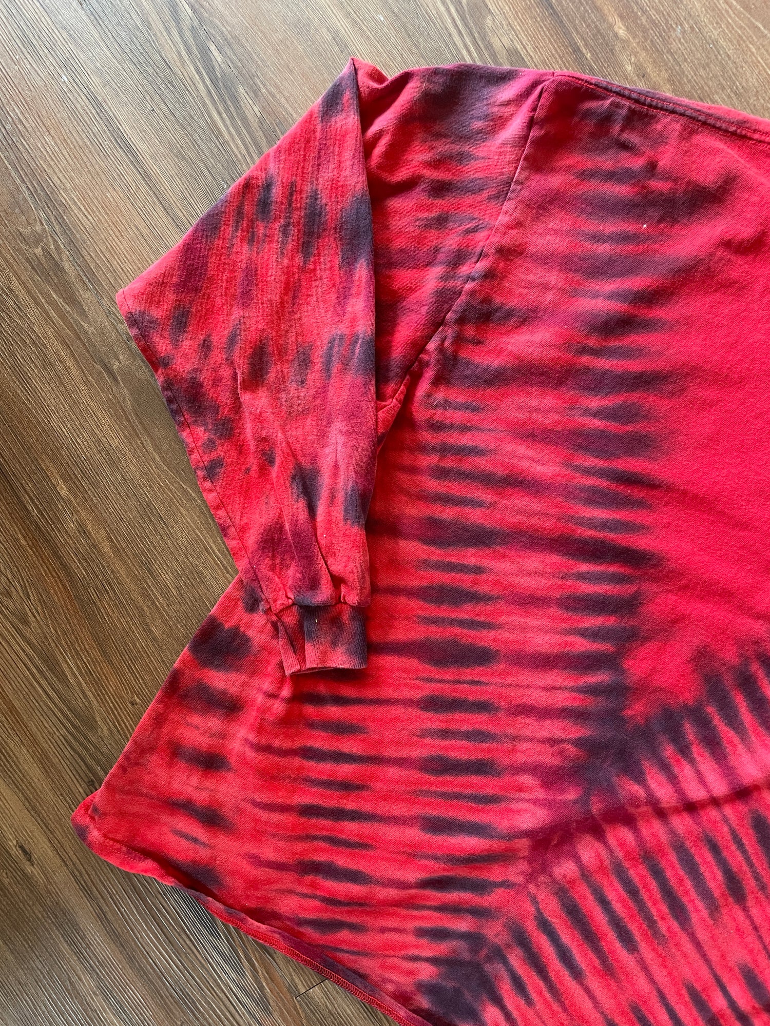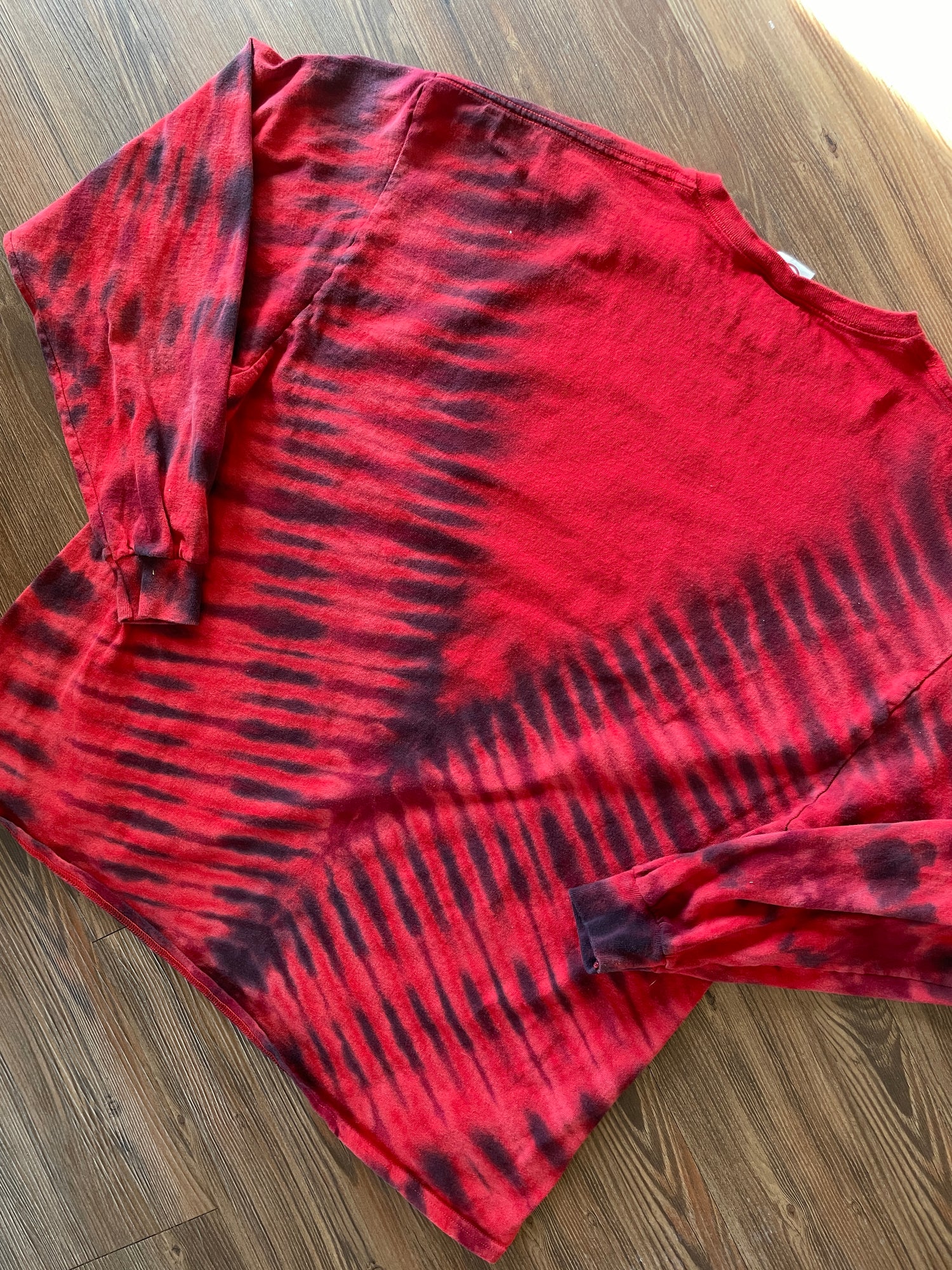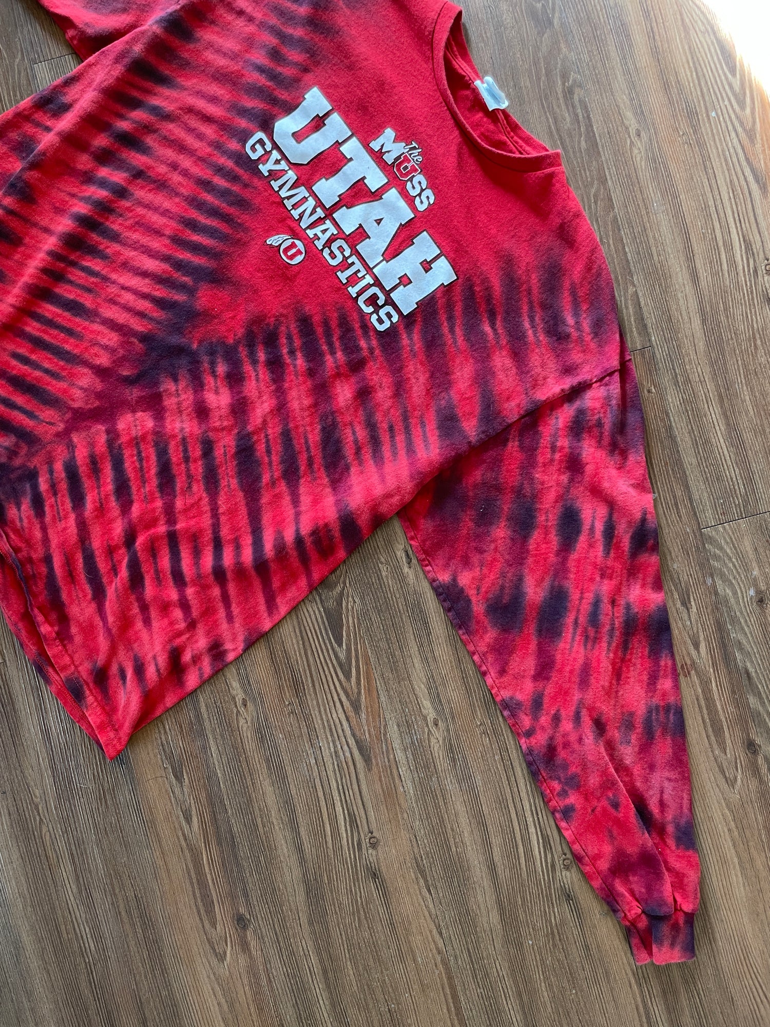 XXL Men’s Utah Gymnastics Handmade Tie Dye T-Shirt | Red and Black V-Pleated Tie Dye Long Sleeve