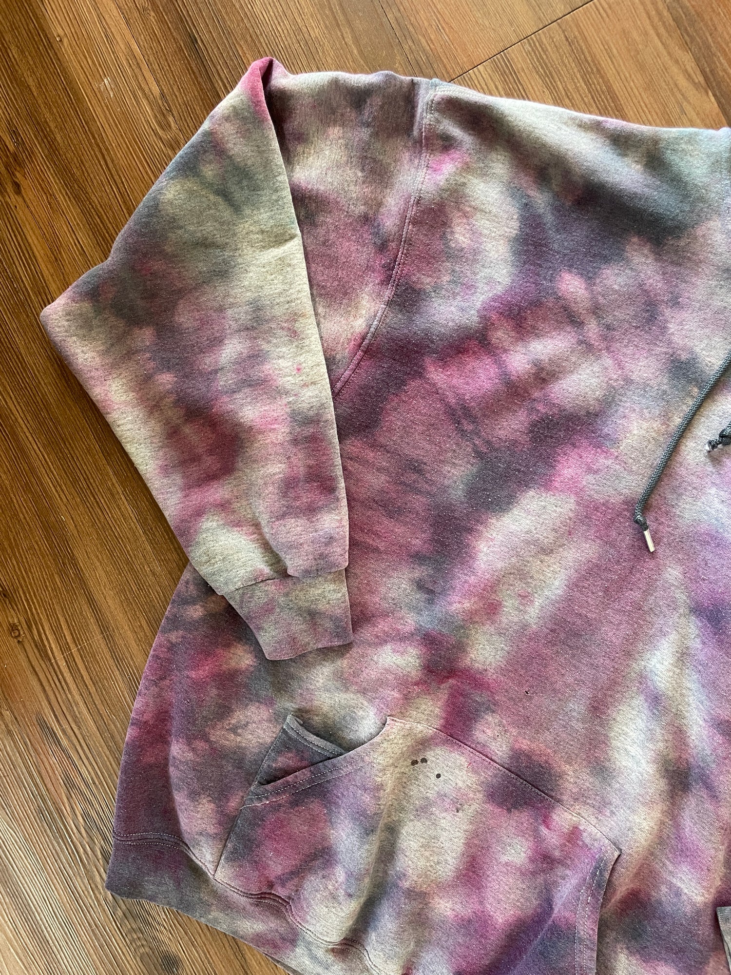 XXL Men’s Handmade Tie Dye Hoodie | Pastel Gray and Purple Pleated Tie Dye Long Sleeve Sweatshirt