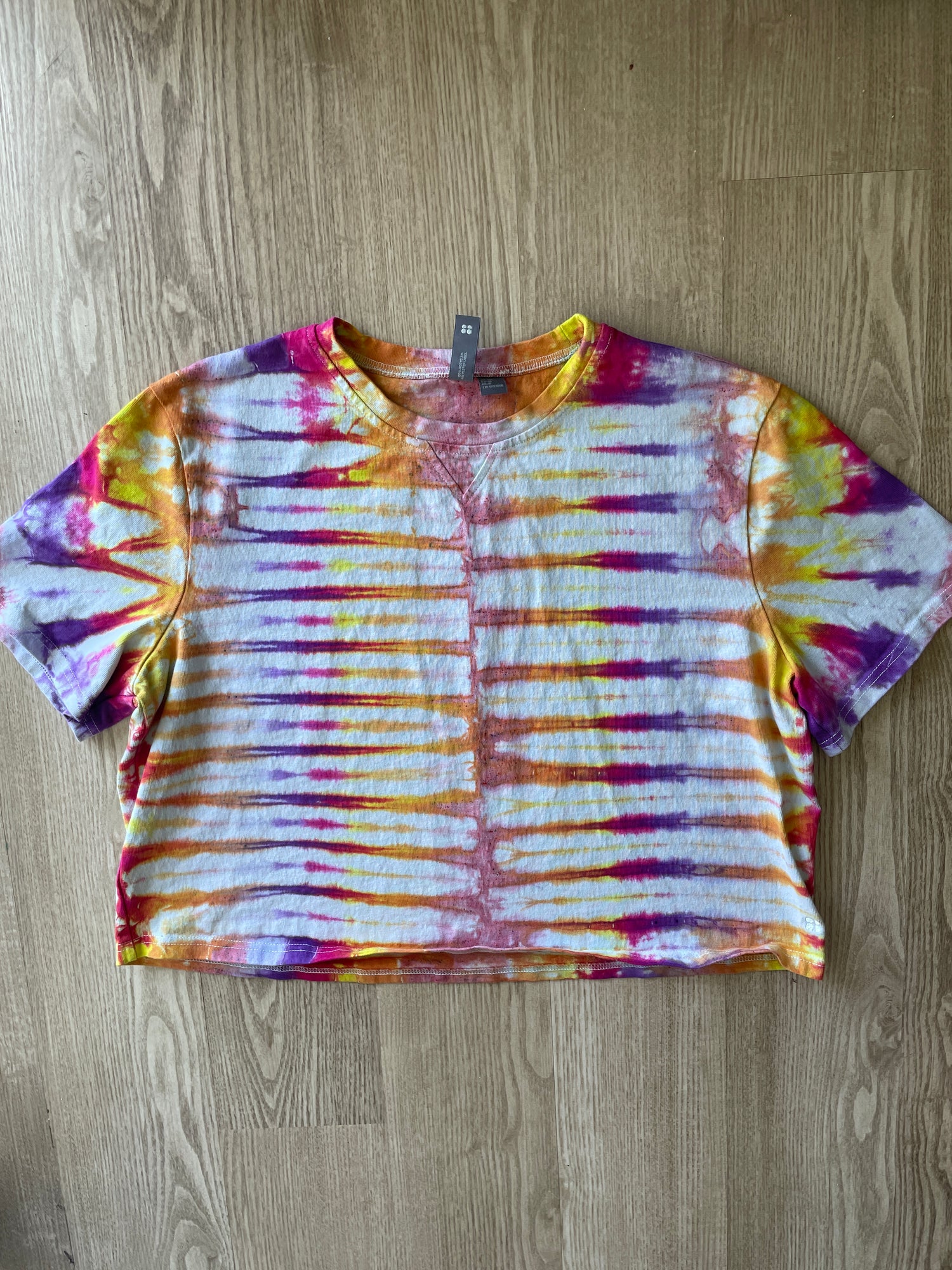 XXL Women's Sweaty Betty Handmade Tie Dye Crop Top | One-Of-a-Kind Multicolored Short Sleeve