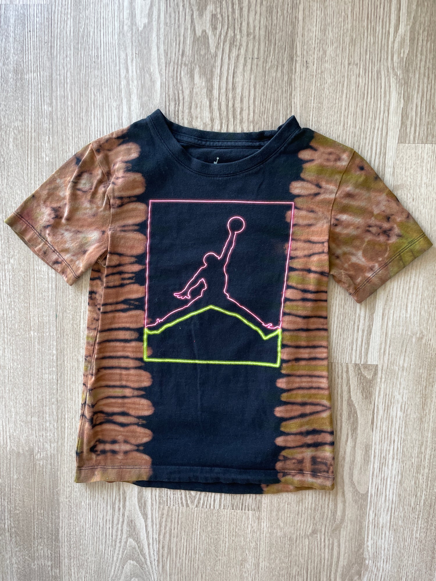 YOUTH SMALL Air Jordan Handmade Reverse Tie Dye T-Shirt | One-Of-a-Kind Black and Bleach Short Sleeve